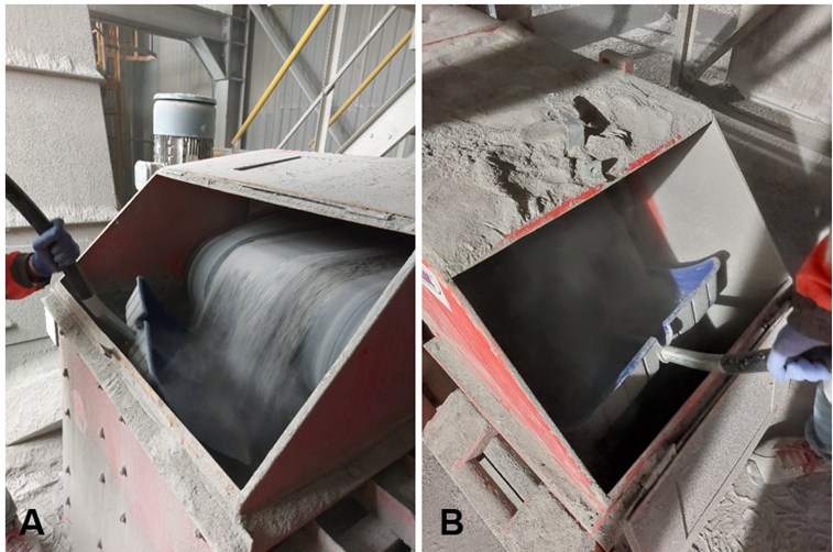 Fig. 5. Sampling with a special shovel: A) from input conveyor belt; B) from output conveyor belt