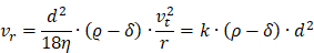 Thus, it can be concluded that analogous relations apply to the motion of the grain in the classifier as well as the motion in the static environment of the gravitational field. Only the relevant centrifugal acceleration is many times higher.
