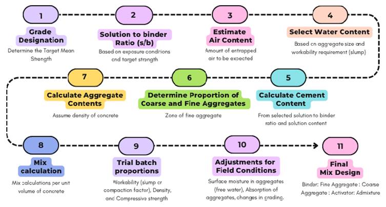 Fig 4. Visual guide to GPC mix design steps (Data source: IS 10262:2019)