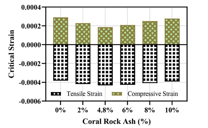 Fig. 7. Effect of coral rock ash on flexible pavement critical strain