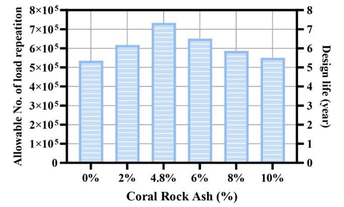Fig. 8. Effect of coral rock ash on flexible pavement service life