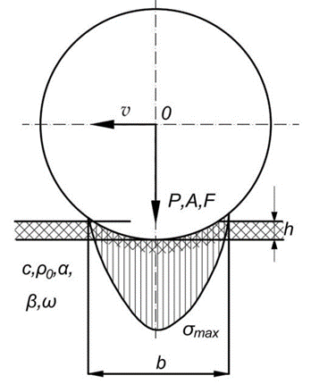 Additional similarity criteria for the subgrade compaction process can be identified through dimensional analysis. For this purpose, we will consider the roller-soil system. The interaction diagram between the roller drum and the subgrade is shown in Figure 2.