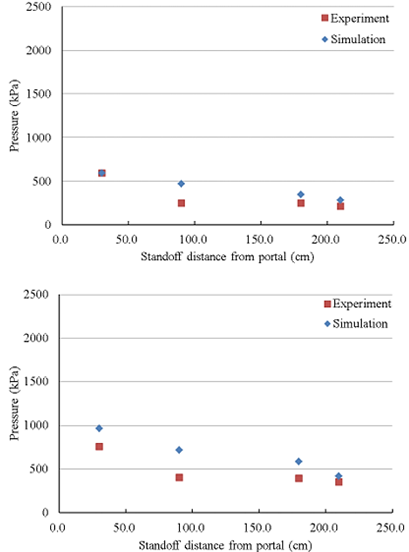 - ALE-based numerical simulations accurately reproduced experimental blast pressure trends.