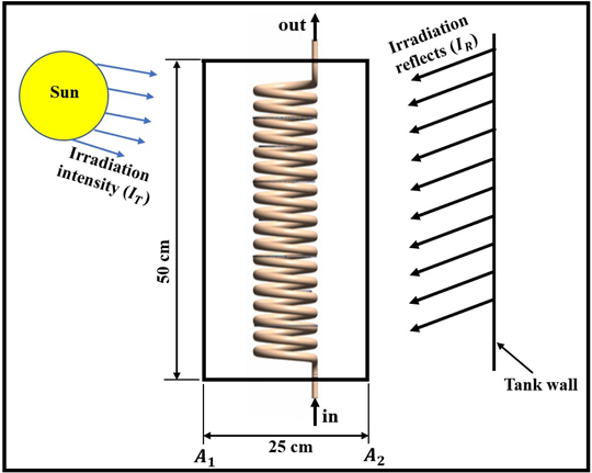 - The proposed study provides a new model of solar water heating where a condenser is combined with water or acetone as the working fluid, which can be a promising chance to solve the major problems in the solar energy application, such as cost efficiency, optimum angle position, and constraints on materials.