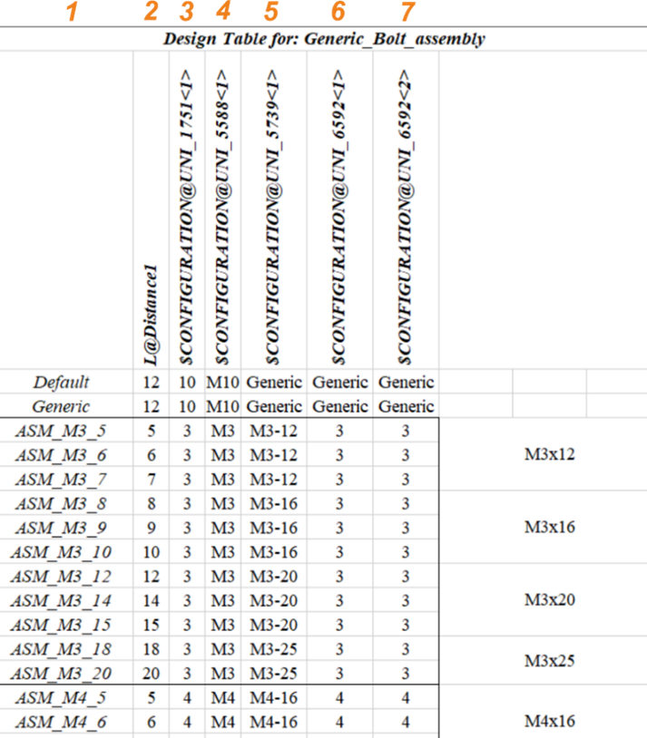 In Table 6 are shown the parametric values, based on the type of thread and the length. This is creating multiple variants for each thread. The important thing here is to be sure that the mounting distance – L - is correct and the threads after the nut are minimum three.