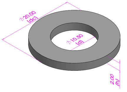 Initially, the individual components of the bolted joint—bolt, nut, flat washer, and elastic washer—were modeled as separate parts using a parametric CAD environment (SolidWorks). For each component, the Design Table functionality is used to define and control key dimensions, defined as geometric parameters, governing their shape and compatibility. These parameters include thread diameter, overall bolt length and head thickness, nut thickness and outer dimensions, washer inner and outer diameters, and washer thickness.