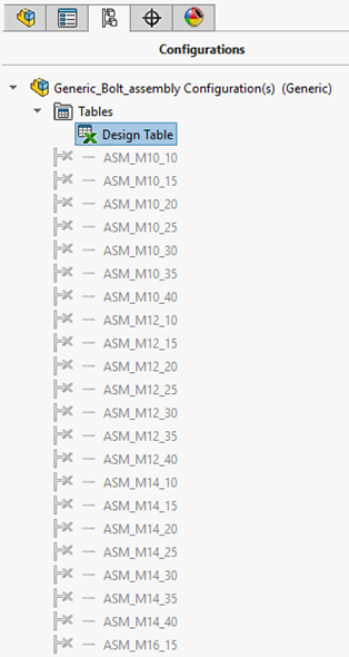 All relevant dimensions are parameterized, allowing the geometry of each component to update automatically when parameter values are modified. Based on these parameter sets, multiple configurations are generated to represent different standardized thread sizes and fastener variants. This approach enables rapid switching between fastener types without the need for manual remodeling.