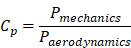 Where Cp is the power coefficient (dimensionless), Pmechanics is the mechanical power generated by the turbine (W), and Paerodynamic is the aerodynamic power available in the wind before interacting with the turbine (W). Paerodynamic calculated using Eq. (3).