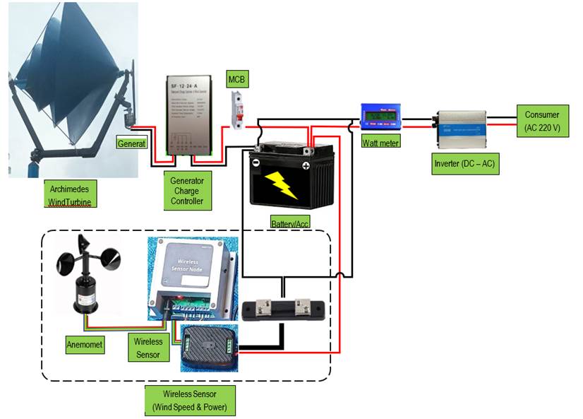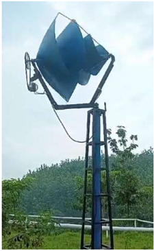 The area of Bangowan Village is 600.9 Ha [34]. It is located at an altitude of 126 meters above sea level, with a wind speed of 6 m.s-1 [35]. Based on research by Dorzhiev and Rosenblum [36], about 10% of studies noted that at low wind speeds, an average of 4-6 m.s-1 wind turbines can operate, although it is recommended that a minimum wind speed of 7 m.s-1 is maintained. Bangowan Village has a tourist destination called "Bukit Kunci", with an average number of 600 daily tourists [34]. Community activities and the number of tourists visiting them will automatically affect energy consumption patterns in the village. The energy available in the Bangowan tourist village is electricity from State Electricity Company (PLN), Indonesia’s state-owned electricity company. Electricity consumption in the village fluctuates, not always steadily, throughout the year. On weekdays, electricity consumption tends to be expected, with energy needs coming from households, public facilities, and small businesses such as stalls and lodgings. But when entering school holidays and long holidays, energy consumption increases drastically along with the increase in the number of tourists, especially in homestays, stalls, and tourist attractions that extend their operations compared to normal days. In Bangowan Village, two units of wind power plants from the Archimedes turbine have been installed, as seen in Fig. 2.