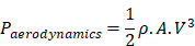 Where Paerodynamic is the aerodynamic wind power (W), ρ is the air density (1,225 kg/m³), A is the rotor swept area (m2), and V is the wind speed (m.s-1)